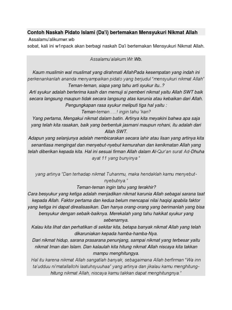 Contoh Naskah Pidato Islami Da I Bertemakan Mensyukuri Nikmat Allah Pdf